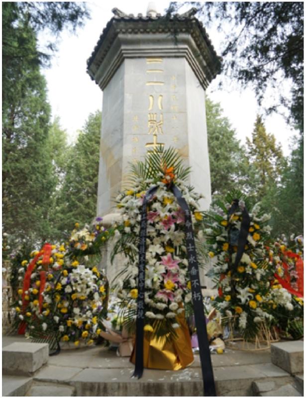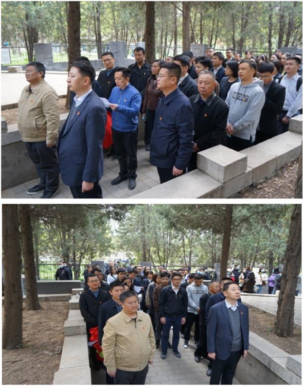 在莊嚴(yán)肅穆的“三一八烈士墓”前,面對著墓碑,沉重莊嚴(yán)的氣氛油然而生,中心趙理峰主任和李成偉書記向紀(jì)念碑敬獻(xiàn)了花籃,所有人懷著崇敬之情,鞠躬向烈士們表示沉痛的哀悼,銘記他們不怕犧牲、甘于奉獻(xiàn)的革命英雄主義精神。