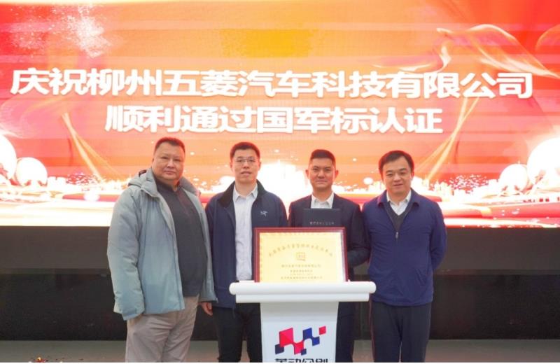 2024年3月4日,柳州五菱汽車科技有限公司(以下簡(jiǎn)稱五菱科技)舉辦了武器裝備質(zhì)量管理體系認(rèn)證證書授牌儀式。北京軍友誠(chéng)信檢測(cè)認(rèn)證有限公司(以下簡(jiǎn)稱軍友誠(chéng)信)周濤總經(jīng)理、謝志磊副總經(jīng)理,廣西汽車集團(tuán)有限公司陳曉峰副總裁,柳州五菱汽車科技有限公司田留勝總經(jīng)理、廖睿副總經(jīng)理出席會(huì)議。軍友誠(chéng)信周濤總經(jīng)理為五菱科技頒發(fā)了武器裝備質(zhì)量管理體系認(rèn)證證書和銅牌