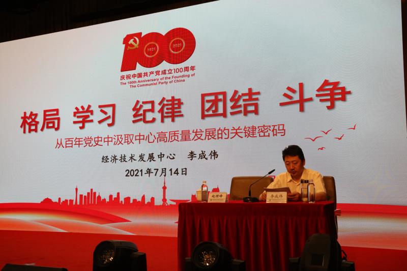 黨旗飄揚迎百年,紅色精神永傳承。中心黨委副書記(主持黨委工作)李成偉副書記以“格局 學習 紀律 團結 斗爭”為題,講授黨史學習教育專題黨課。李成偉副書記的黨課把握黨史發展脈絡清晰準確、旗幟鮮明立場堅定。以黨的發展歷史為主線,在黨的奮斗歷程中萃取智慧和力量,以偉大建黨精神為引領,在建黨精神中解讀深刻內涵和時代價值,既有政治高度又有理論深度,既有歷史維度又有現實角度,內容十分細致入微,為下一步工作的開展指明了方向。