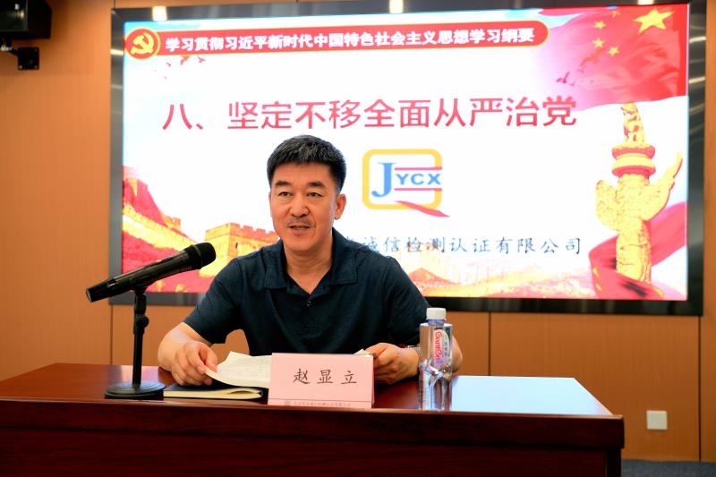 活動中,公司書記趙顯立領讀領學《習近平新時代中國特色社會主義思想學習綱要(2023年版)》部分章節內容。趙顯立強調,堅定不移全面從嚴治黨,是新時代堅持和發展中國特色社會主義的政治保證。全體職工要始終堅持用習近平新時代中國特色社會主義思想凝心鑄魂,加強思想淬煉、政治歷練、實踐鍛煉、專業學習,在重大斗爭中不斷磨礪提升能力水平,擔當起國防科技工業現代化建設的歷史重任。