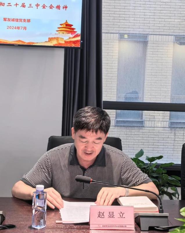 2024年7月30日,北京軍友誠信檢測認證有限公司(以下簡稱軍友誠信)召開黨員大會,傳達學習貫徹黨的二十屆三中全會精神和有關(guān)文件精神,由公司書記趙顯立主持會議,公司全體黨員參加會議。