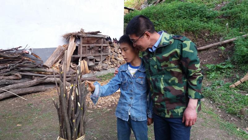 等轉過身來,王淘的眼睛和鼻子都紅紅的,“這個小男孩今年11歲,在鎮上讀小學。他砍的是黃柏樹枝,皮剝下來曬干可以賣給藥材商,一斤5塊錢,好補貼自己的生活費。我讓他休息會兒就走,因為他還要步行2里地才能到家吃晚飯。”說到這里,王淘的眼睛又濕潤了。他低頭說,“我看不得老人吃苦,看不得孩子受委屈。”